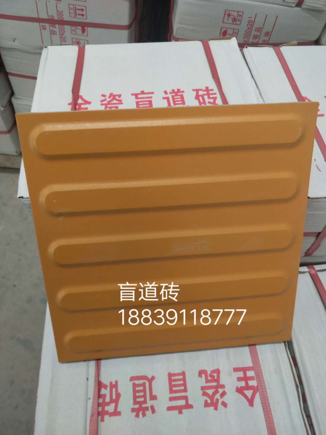 二、陶瓷止步盲道磚,300*300*25(帶防滑點),【全瓷盲道磚特點】:.色彩鮮亮:高溫燒結、自然成色、故其色彩更顯純凈天然、高雅華貴。.美觀大方:簡潔大方、觸覺明顯、磚體表面如玉、不褪色。.抗風化:工藝配方獨特,內外品質一致,久經風吹雨曬,雨雪露凍,而光彩依然。.抗折抗壓:產品厚度達到20mm-25mm。抗折強度、抗壓強度均大于花崗巖。.耐磨性:高壓成型、吸水率小、體質密度大、耐磨耐用。