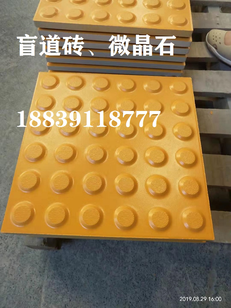 10元一塊,來電咨詢18839118777,中冠盲道磚盲道磚是為盲人安全提供的行路方便道路設施。盲道磚由三類磚鋪就,一類是條形方向引路磚,引導盲人放心前行,稱為行進盲道磚,或盲道方向引路磚;一類是帶有圓點的提示磚,提示盲人前面有障礙,該轉彎了,稱為提示盲道磚,或盲道方位引路磚;還有一類就是盲道危險警告引路磚,圓點較大的,就是警視不要超越,前面危險。
