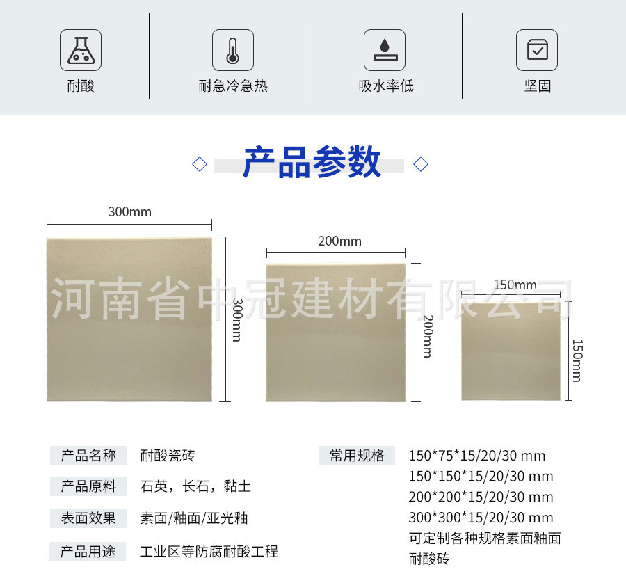亞釉耐酸磚集合了素面與釉面的優(yōu)點(diǎn)、既適合清洗又非常防滑,用于車間地面可以防滑。同時(shí)也可以用在化工企業(yè)的墻面與酸池裝修。