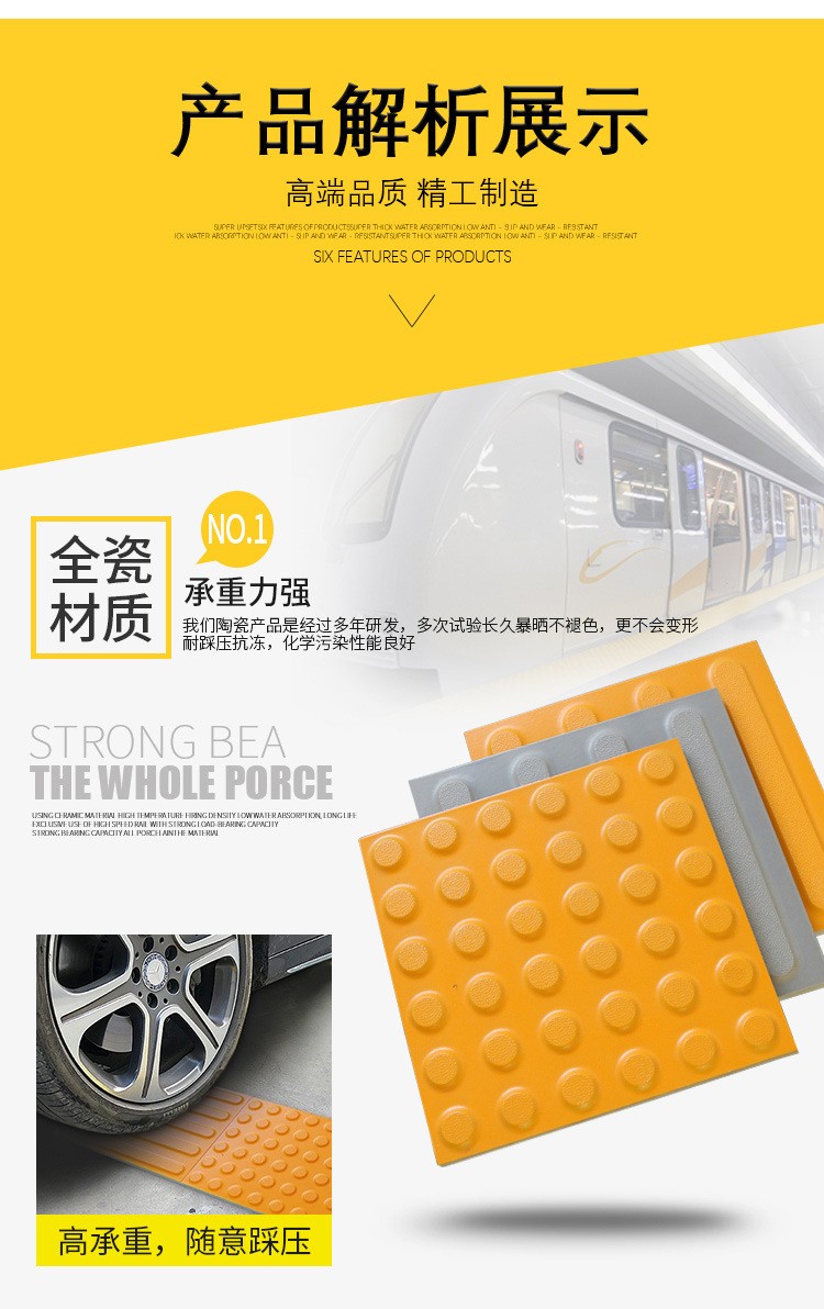 同時一般盲道磚是在站臺石材鋪貼完成后填到預(yù)留的間隙里的。所以一般實際鋪貼的時候會有自然縫產(chǎn)生,導(dǎo)致盲道磚尺寸足300*300尺寸的時候是填不進去的。大部分盲道磚說是300*300毫米,但是一般會被要求裁切成299*299*20.299*299*25或者298*298*20.298*298*25以順利鋪貼并且無縫美觀。