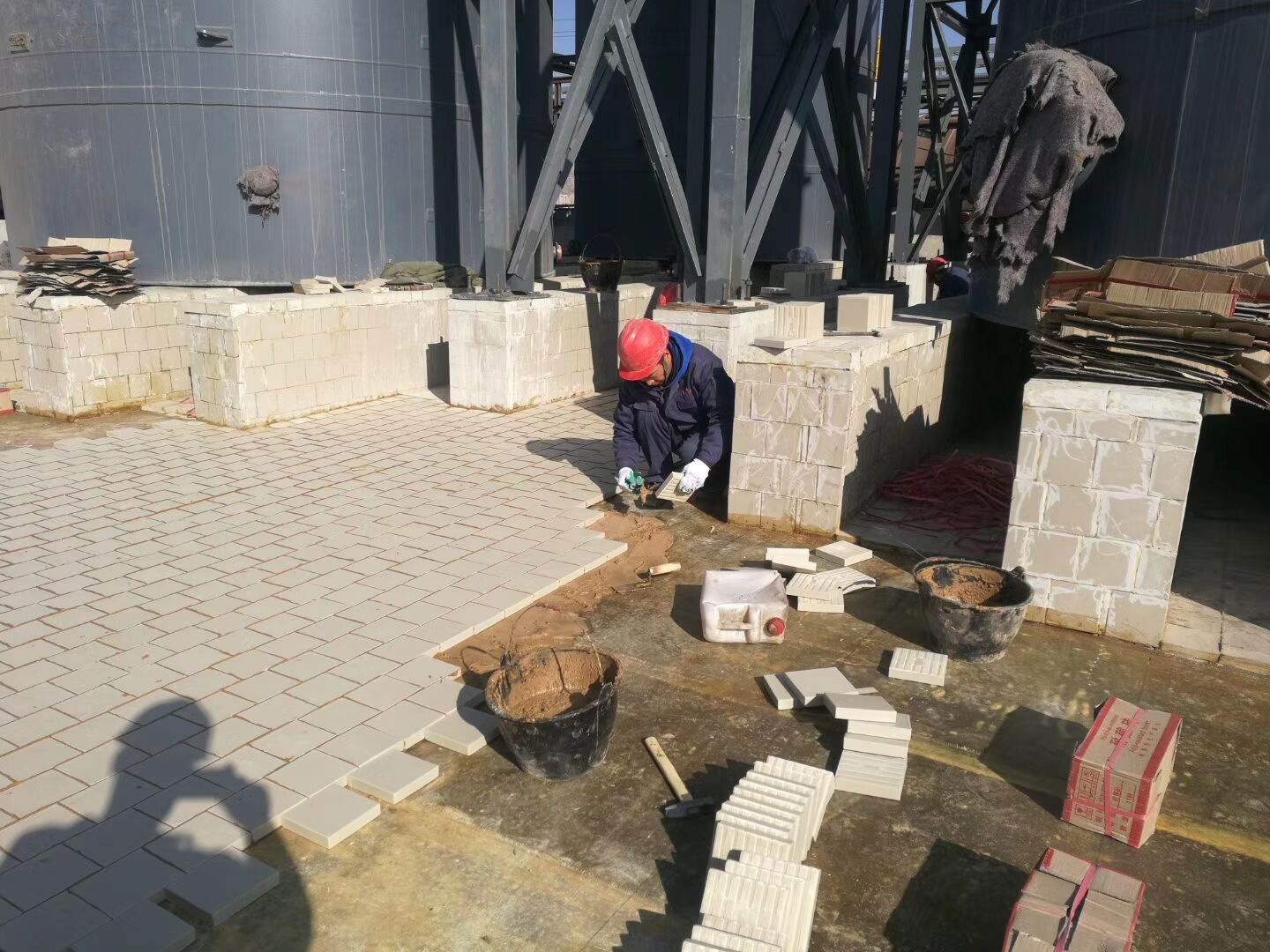 使用說明: 一般環(huán)氧樹脂,耐酸膠泥、耐酸水泥鋪貼,鋪貼時可根據(jù)上述生產廠家產品使用說明書進行施工; 用草酸清洗混凝土表面,達到酸堿中和; 工業(yè)瓷耐酸磚,間縫寬度約8—10mm,間縫深度與磚厚相平為宜,以防泄露; 鋪貼完畢后應用槽酸沖刷表面,以助于更加牢固。